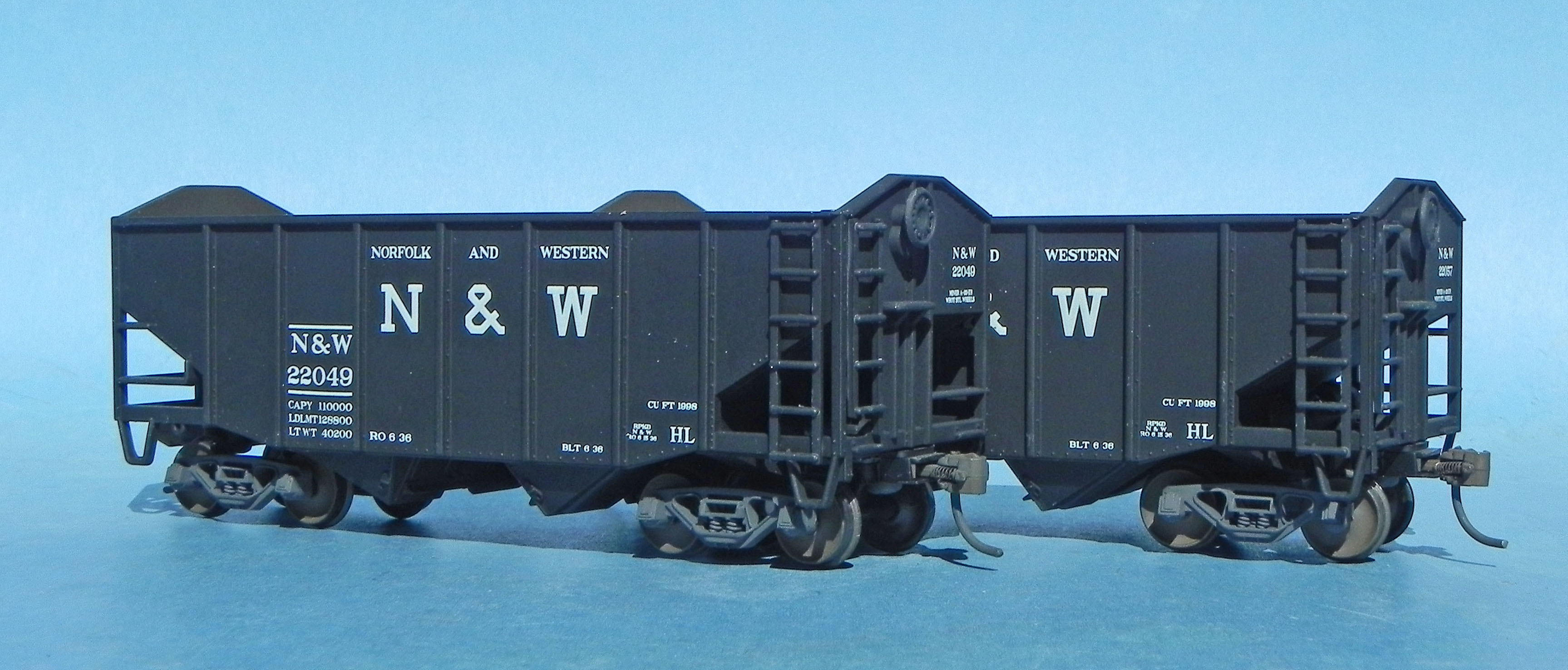 N&W HO Stewart Class HL Hoppers, SET OF 2, Factory Ptd, Kadee Wheels & Couplers