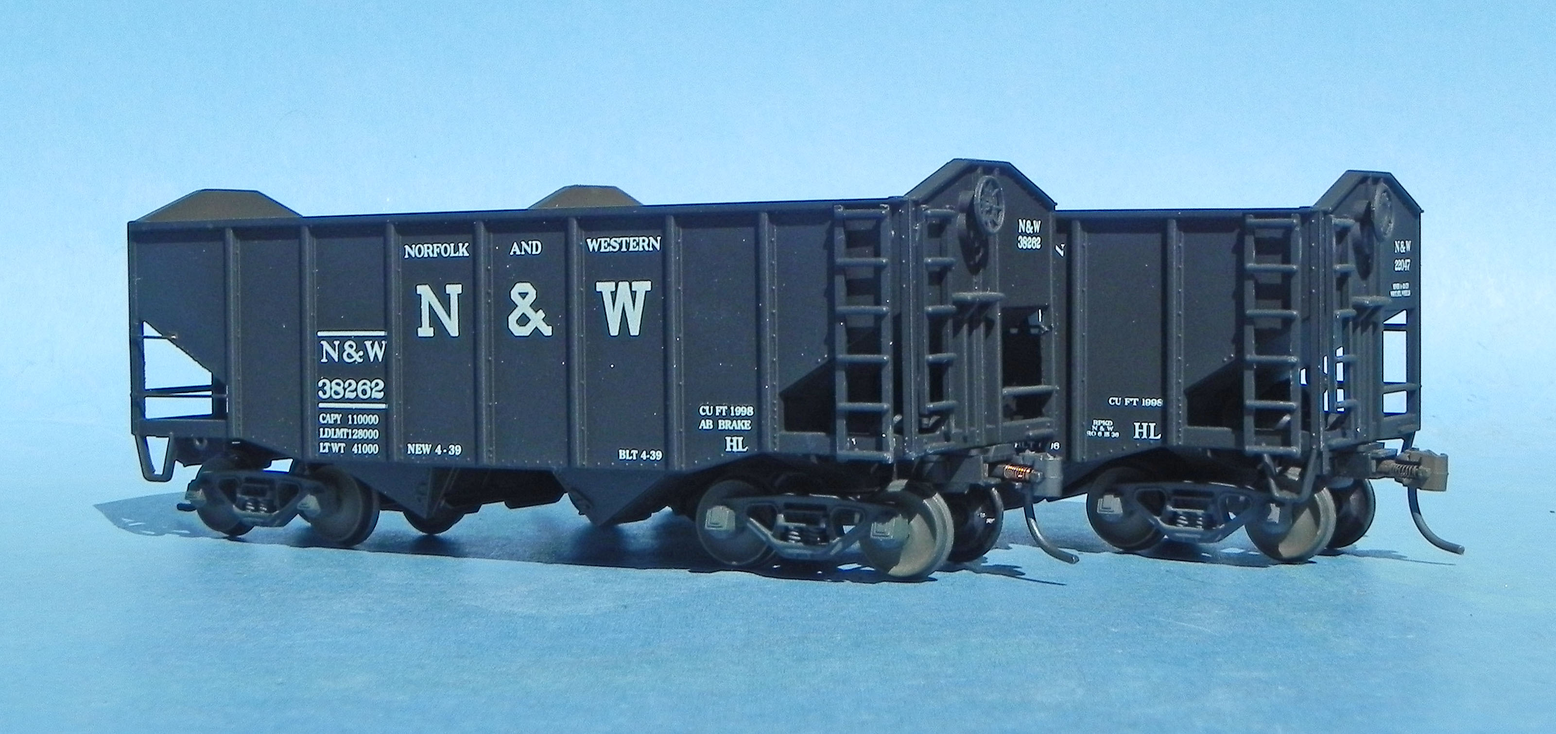 N&W HO Stewart Class HL Hoppers, SET OF 2, Kadee Wheels & Couplers